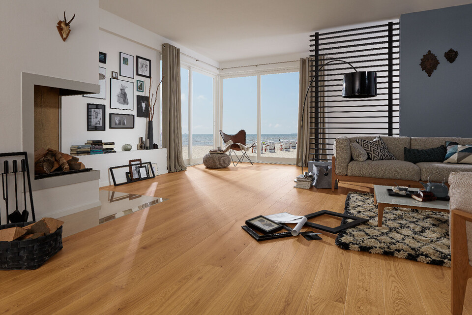 It goes without saying that light doesn’t always enter a room from the same direction, so if a room has several windows then laying the flooring diagonally can be a good solution. This creates a particularly striking effect on the floor that stands in stark contrast to the contours of the rest of the room. But it’s not just the incoming light that can affect the decision on which direction to choose when laying flooring. What do people see when they enter the room? Where does the floor lead them? A narrow hallway, for example, can be made to appear significantly longer by laying the planks and boards lengthways. Laying the flooring crossways, on the other hand, makes the space appear shorter but wider.