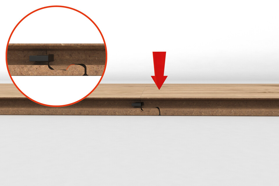 Various patented click systems are used for MEISTER floors. These mean that the floors can be laid very easily and using floating installation without glue or other adhesives. Each click system is tailored to the specific features and format of the flooring. The Masterclic Plus click system is used particularly frequently. What’s special about it: The end is only locked in place once the plank is laid in the following row. This ensures a particularly secure and dimensionally stable connection.