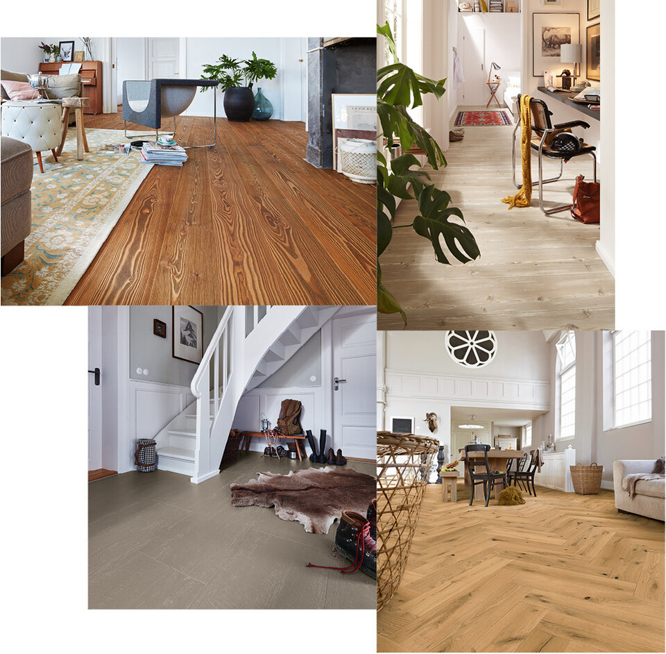 It goes without saying that light doesn’t always enter a room from the same direction, so if a room has several windows then laying the flooring diagonally can be a good solution. This creates a particularly striking effect on the floor that stands in stark contrast to the contours of the rest of the room. But it’s not just the incoming light that can affect the decision on which direction to choose when laying flooring. What do people see when they enter the room? Where does the floor lead them? A narrow hallway, for example, can be made to appear significantly longer by laying the planks and boards lengthways. Laying the flooring crossways, on the other hand, makes the space appear shorter but wider.