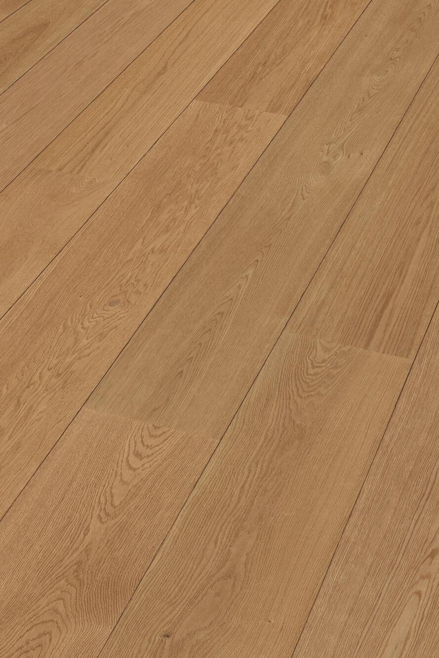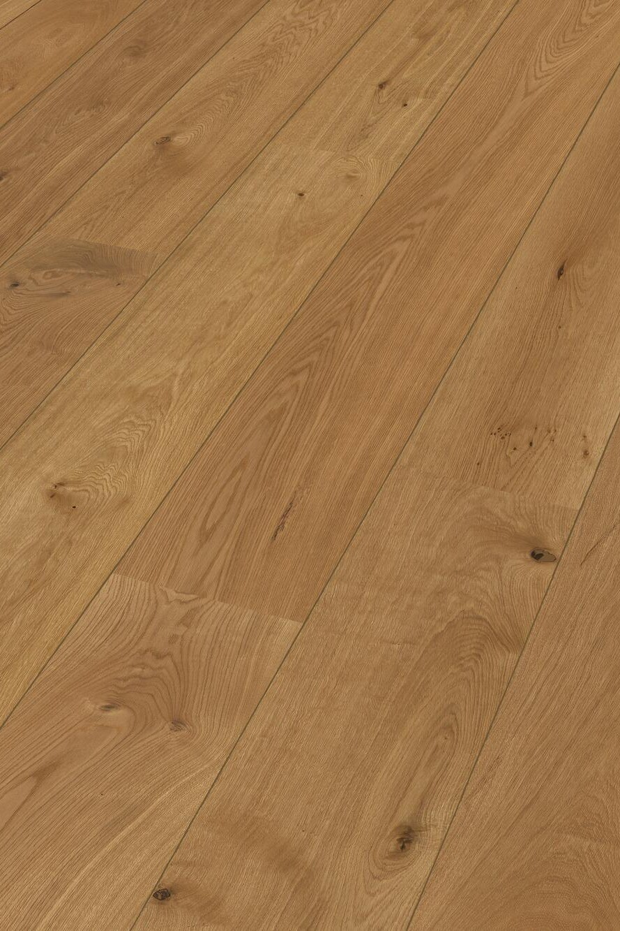 Dans cette sélection, nous proposons volontairement des surfaces ayant un jeu de couleurs et de structures qui accentuent le côté naturel du bois. Des nœuds sains et adhérents, des proportions d’aubier et de bois de cœur brun font partie intégrante de l’aspect général animé. Nos lames larges en chêne style maison de campagne et de cette sélection sont sans aubier. Les nœuds sont colmatés. Des petits nœuds et des petites fissures non colmatés peuvent apparaître.